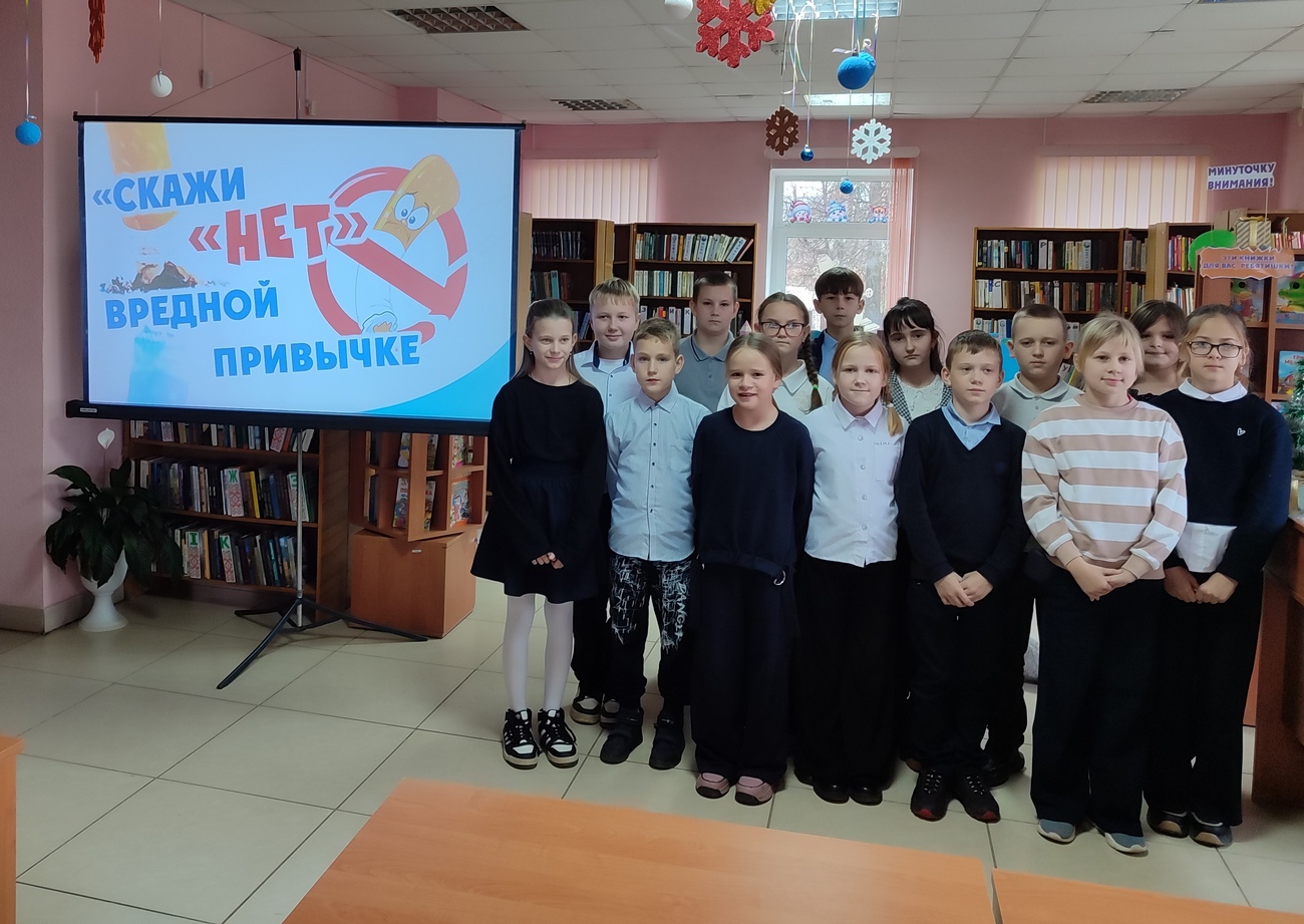 К Международному дню отказа от курения в центральной районной библиотеке им. И.Чигринова для учащихся 5-го «Б» класса УО «Костюковичская районная государственная гимназия» была проведена беседа «Скажи «НЕТ» вредной привычке». Библиотекарь ознакомила участников с историей появления табака и сигарет, рассказала о причинах курения и его последствиях, напомнила о том, почему человек начинает курить, проинформировала, сколько в мире страдает и гибнет людей от этой пагубной привычки. Затем школьники посмотрели видеоролик «Влияние никотина и электронных сигарет на организм человека». Для закрепления услышанной информации ребята ответили на вопросы антитабачной викторины, приняли участие в игре «Болезни курильщика». В завершении встречи каждый для себя сделал вывод: нужно беречь здоровье своё и своих близких, сказать курению - НЕТ!