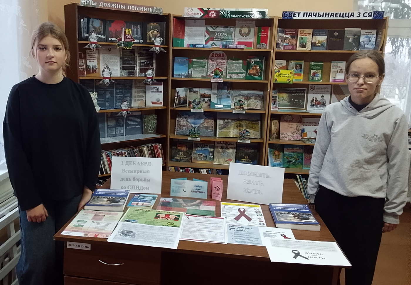 С целью привлечения внимания к проблеме СПИДа, пропаганды здорового образа жизни и формирования ответственного отношения к своему здоровью, в Тупичинской сельской библиотеке оформлена выставка-размышление «Помнить. Знать. Жить». На выставке представлены книги, буклеты, плакаты, рассказывающие об истории возникновения Всемирного дня борьбы со СПИДом, о современном состоянии проблемы в целом, о путях заражения СПИДом, признаках заболевания, и методах борьбы с ним. Материалы, представленные на выставке, способствуют формированию у подростков и молодёжи чувства ответственности за своё будущее.