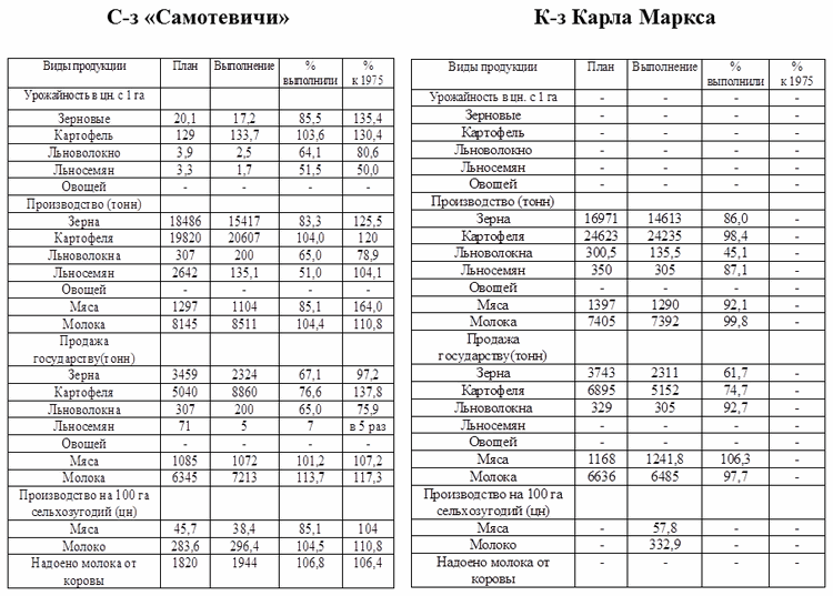 производственной деятельности совхоза «Самотевичи» и колхоза «им. Карла Маркса»