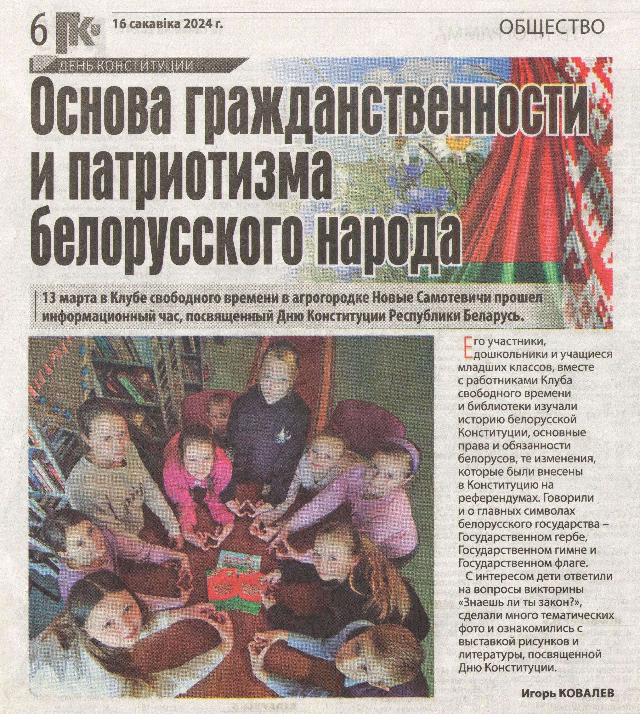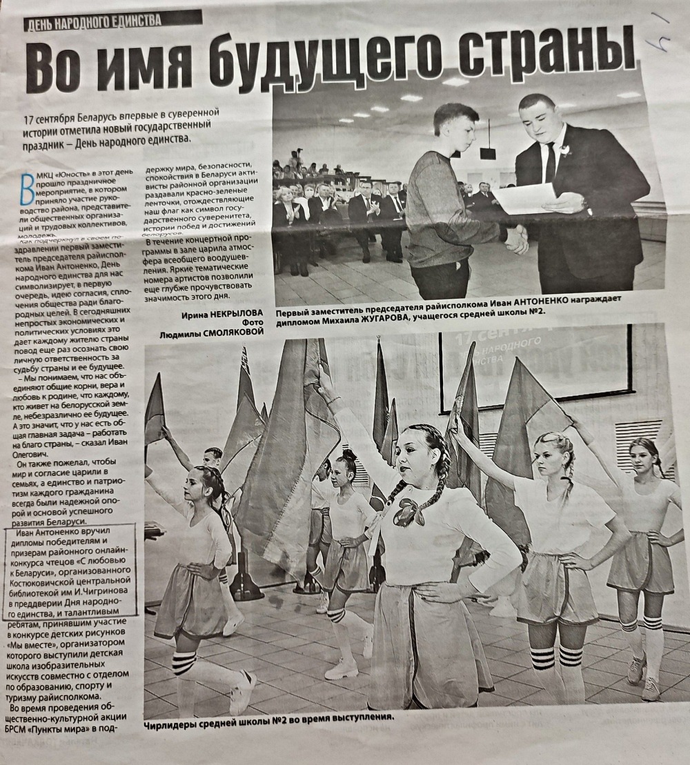 6. Во имя будущего страны // Голас Касцюкоўшчыны. — 2021. — 22 верасня. — С. 1.