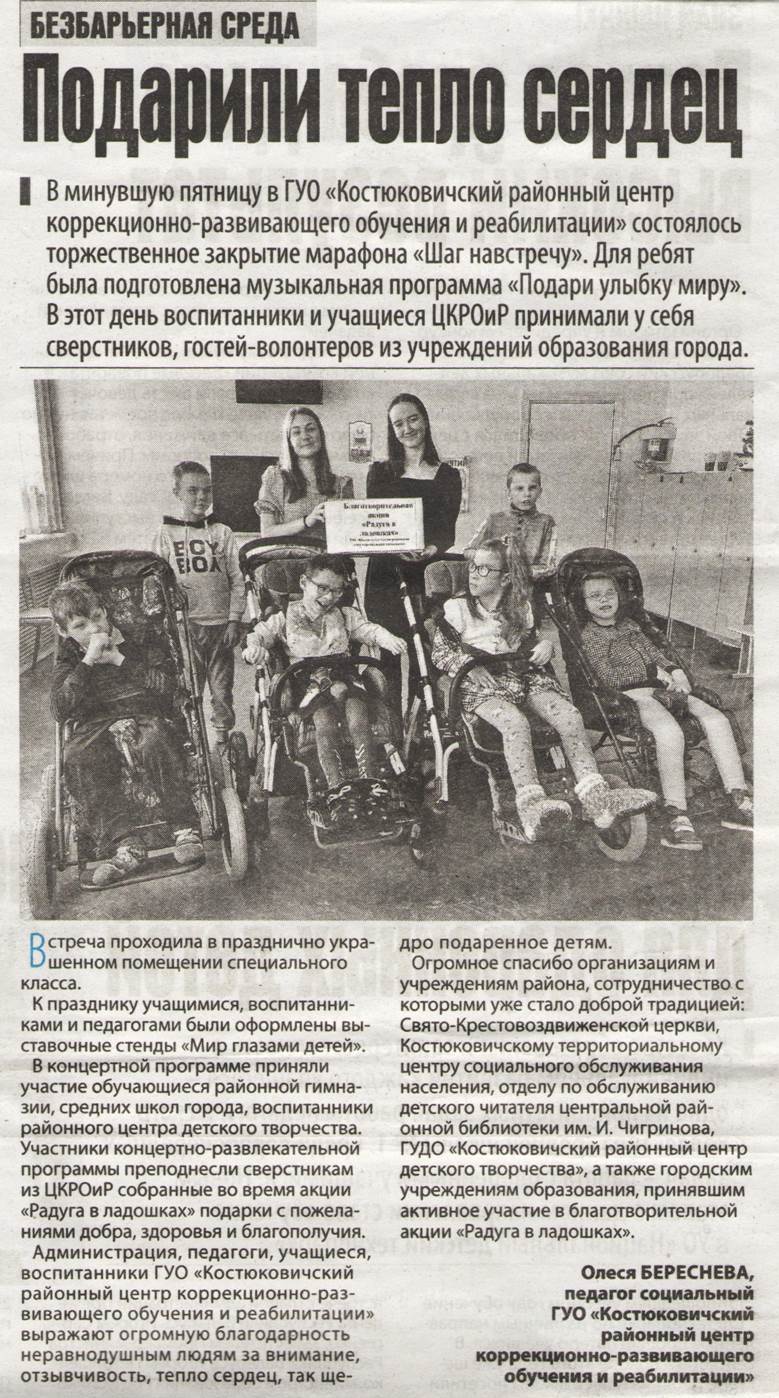 3. Живёт на свете доброта // Голас Касцюкоўшчыны. — 2019. — 30 кастрычніка. — С. 5.