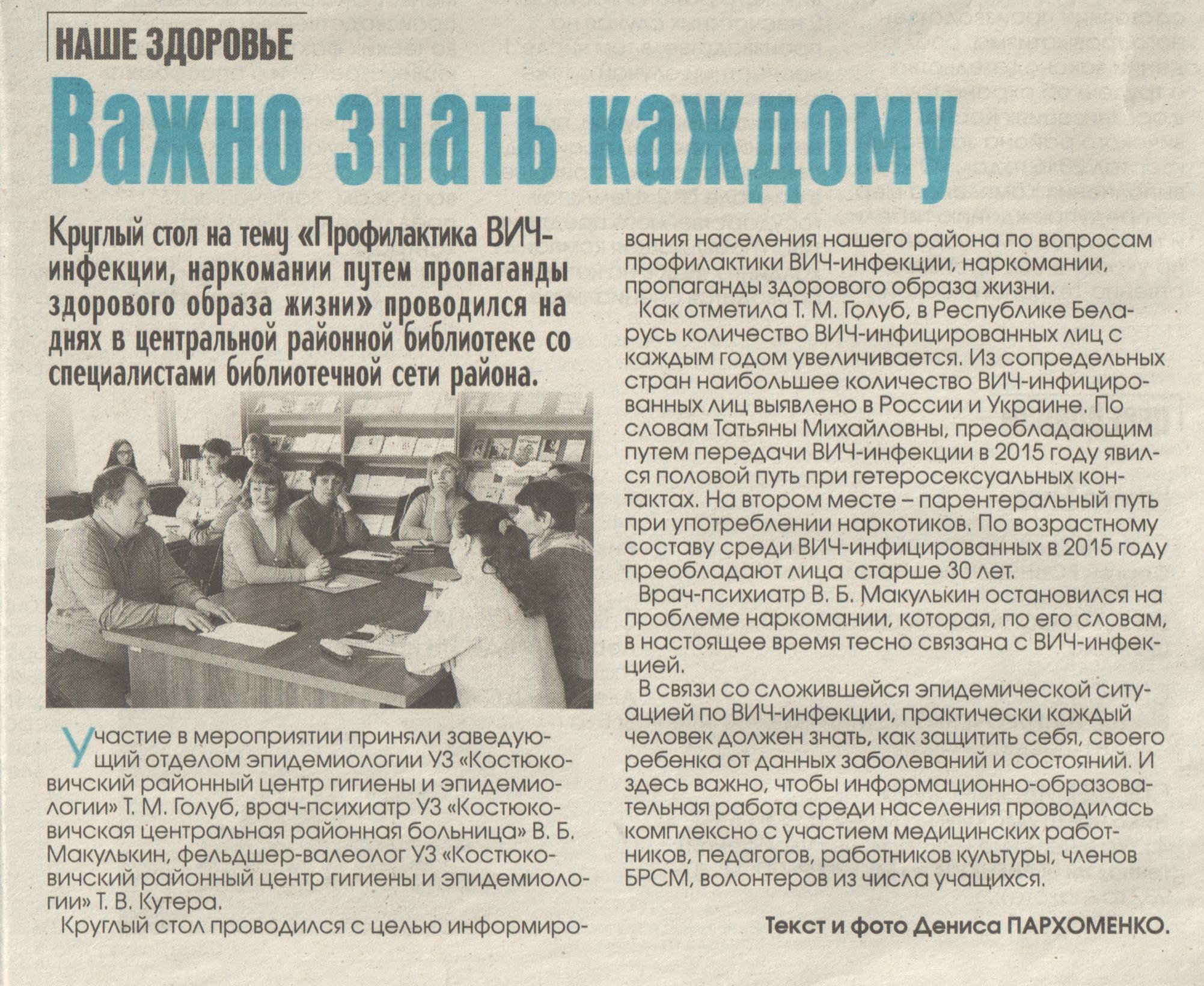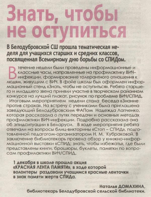 28. Леоненко, Т. Областная профилактическая акция “Вместе против наркотиков” / Т. Леоненко // Голас Касцюкоўшчыны. — 2014. — 1 сакавіка. — С. 13.