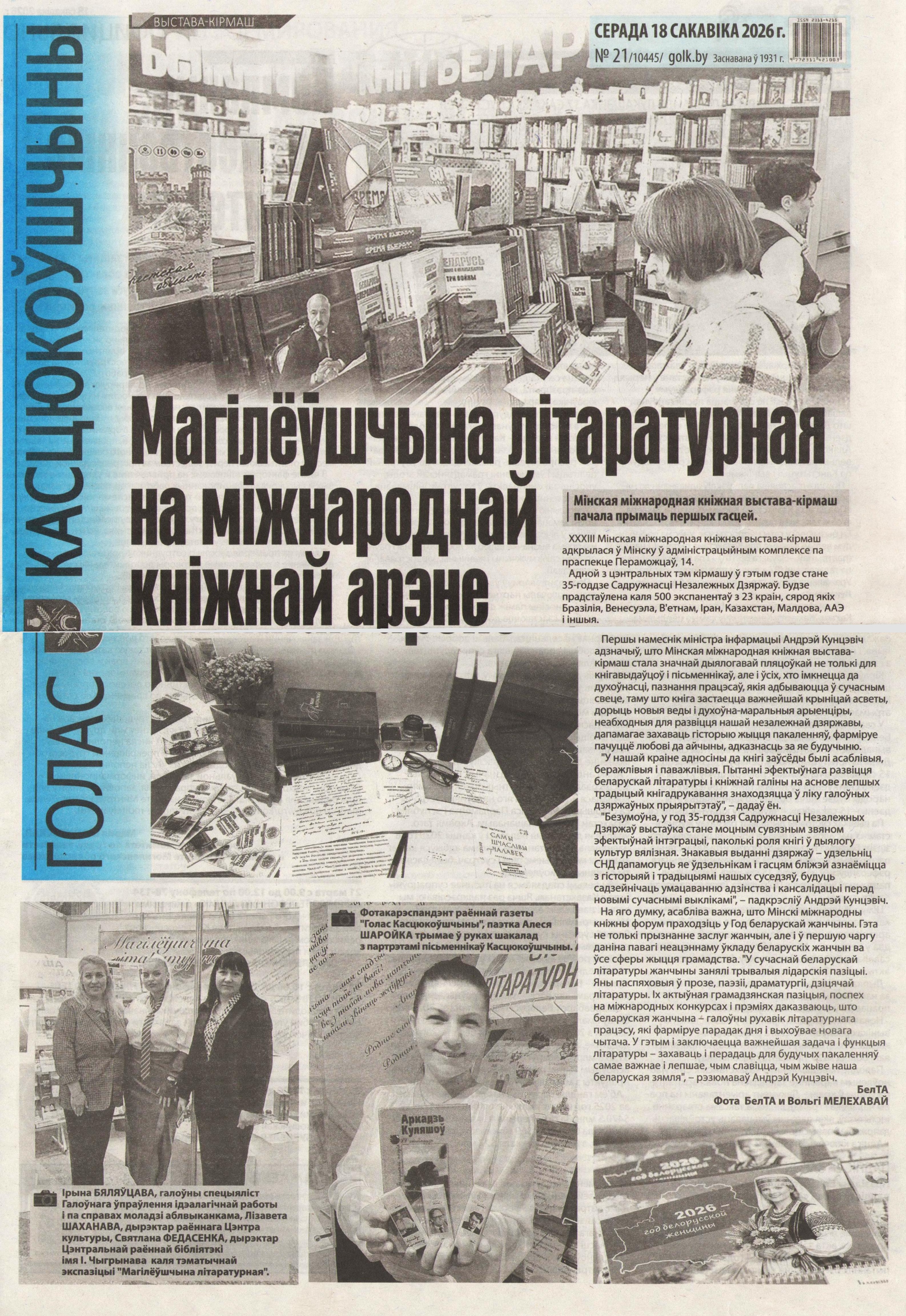 2. Шаройка, А. Слова як памяць / Алеся Шаройка ; фота аўтара // Голас Касцюкоўшчыны. — 2026. — 25 сакавіка. — С. 6 : фота.