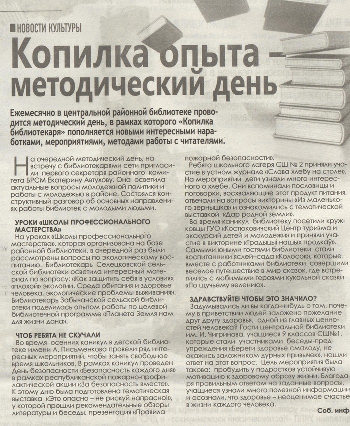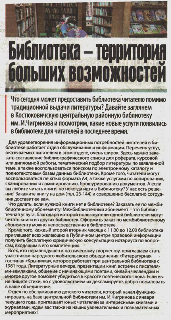 3. Библиотека – территория больших возможностей // Голас Касцюкоўшчыны. — 2022. — 5 лістапада. — С. 7.