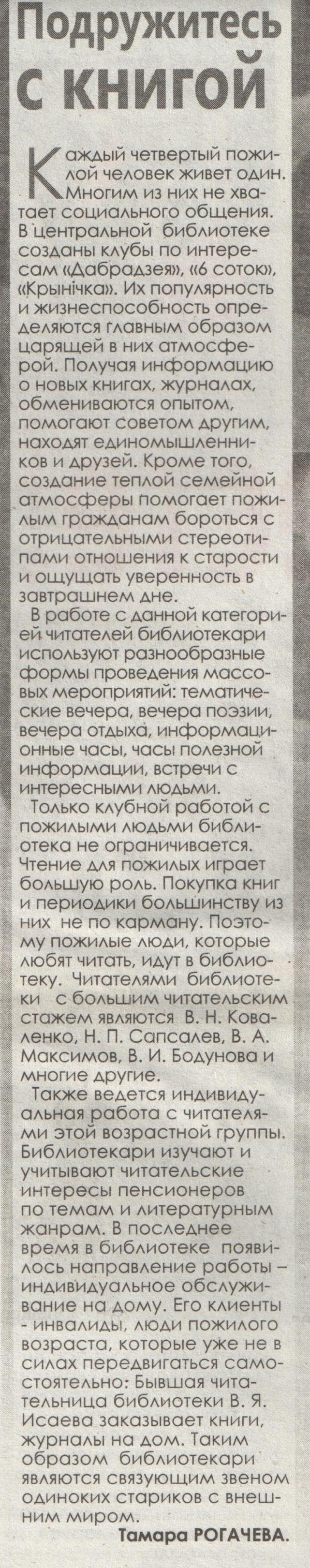 29. Рогачёва, Т. Опыт работы публичных центров правововй информации Костюковичской ЦБС по правововму просвещению населения / Т. Рогачёва // Право.by. — 2013. — №4. — С. 121—123.