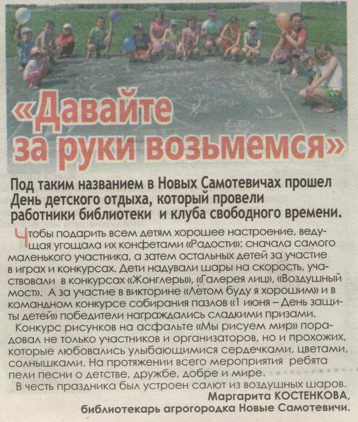 26. Сырамалотава, Ю. Галоўны скарб народа / Юлія Сырамалотава // Голас Касцюкоўшчыны. — 2013. — 27 ліпеня. — С. 1.