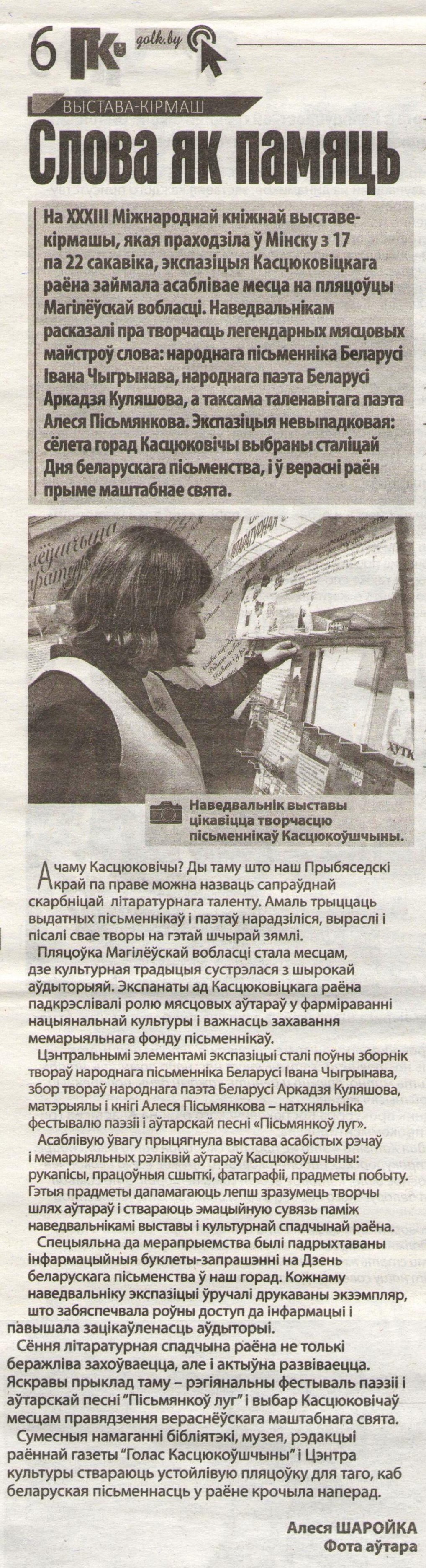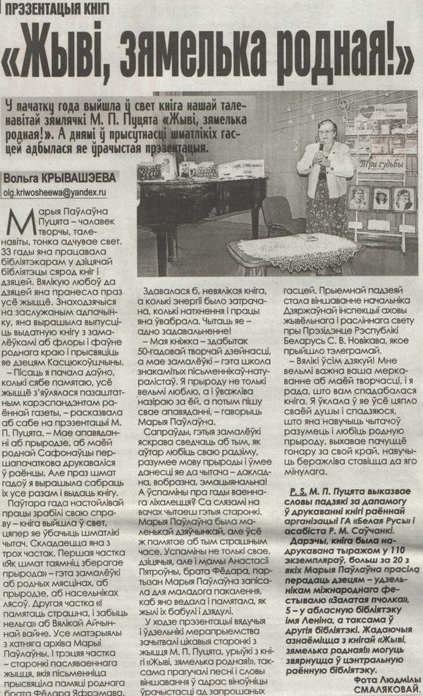 16. Кривошеева, О. Состоялась презентация книги / Ольга Кривошеева // Голас Касцюкоўшчыны. — 2018. — 3 лютага. — С. 7