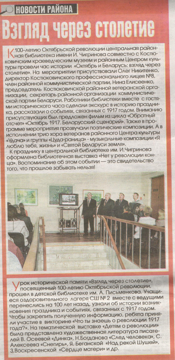 Мерапрыемствы Касцюковіцкай цэнтральнай бібліятэкі імя І. Чыгрынава, прысвечаныя да 80-гадовага юбілею Івана Чыгрынава, ураджэнца в.Вялікі Бор Касцюковіцкага раёна.