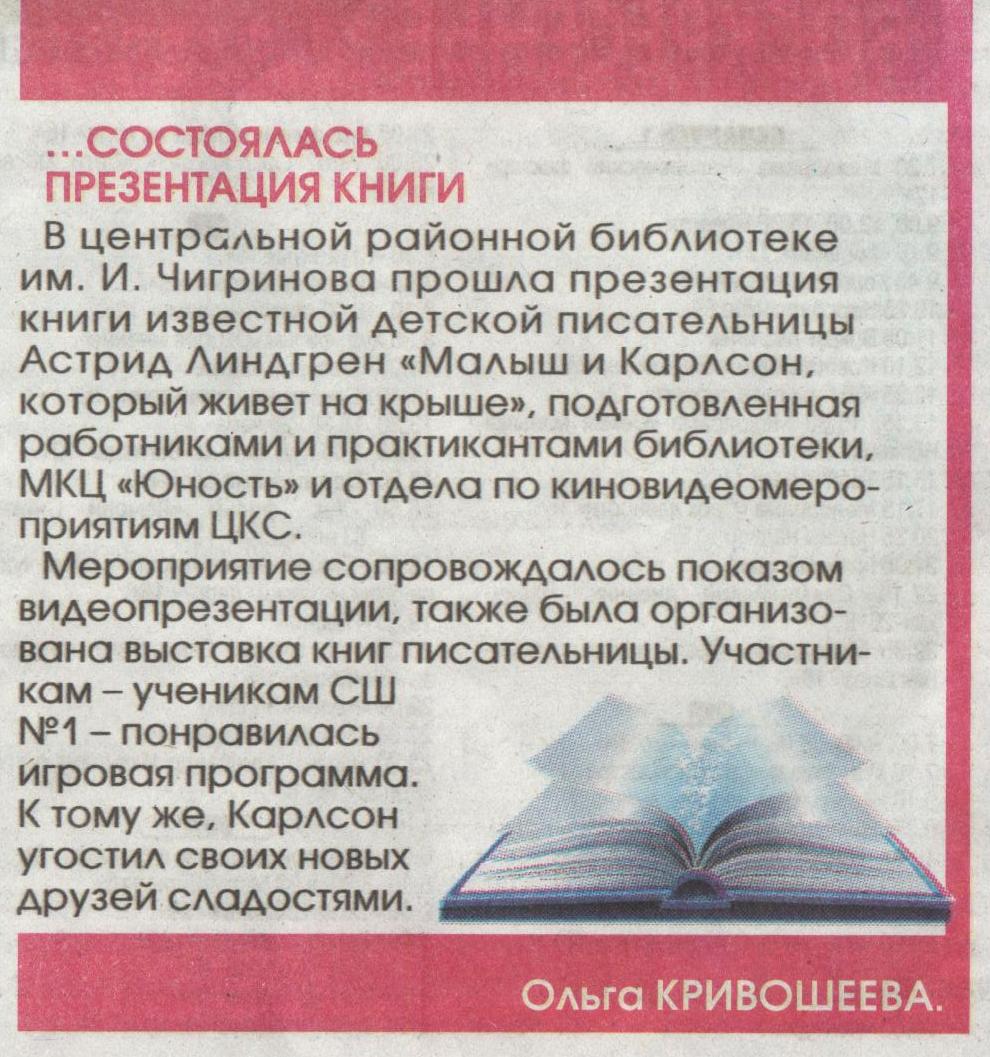В центральной библиотеке им. И. Чигринова состоялась презентация книги Астрид Линдгрен.