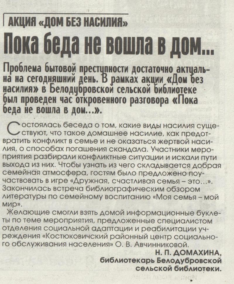 23. Гулькова, Т. Конфликты. Ищем выход. / Т. Гулькова // Голас Касцюкоўшчыны. — 2014. — 2 апреля. — С. 4.