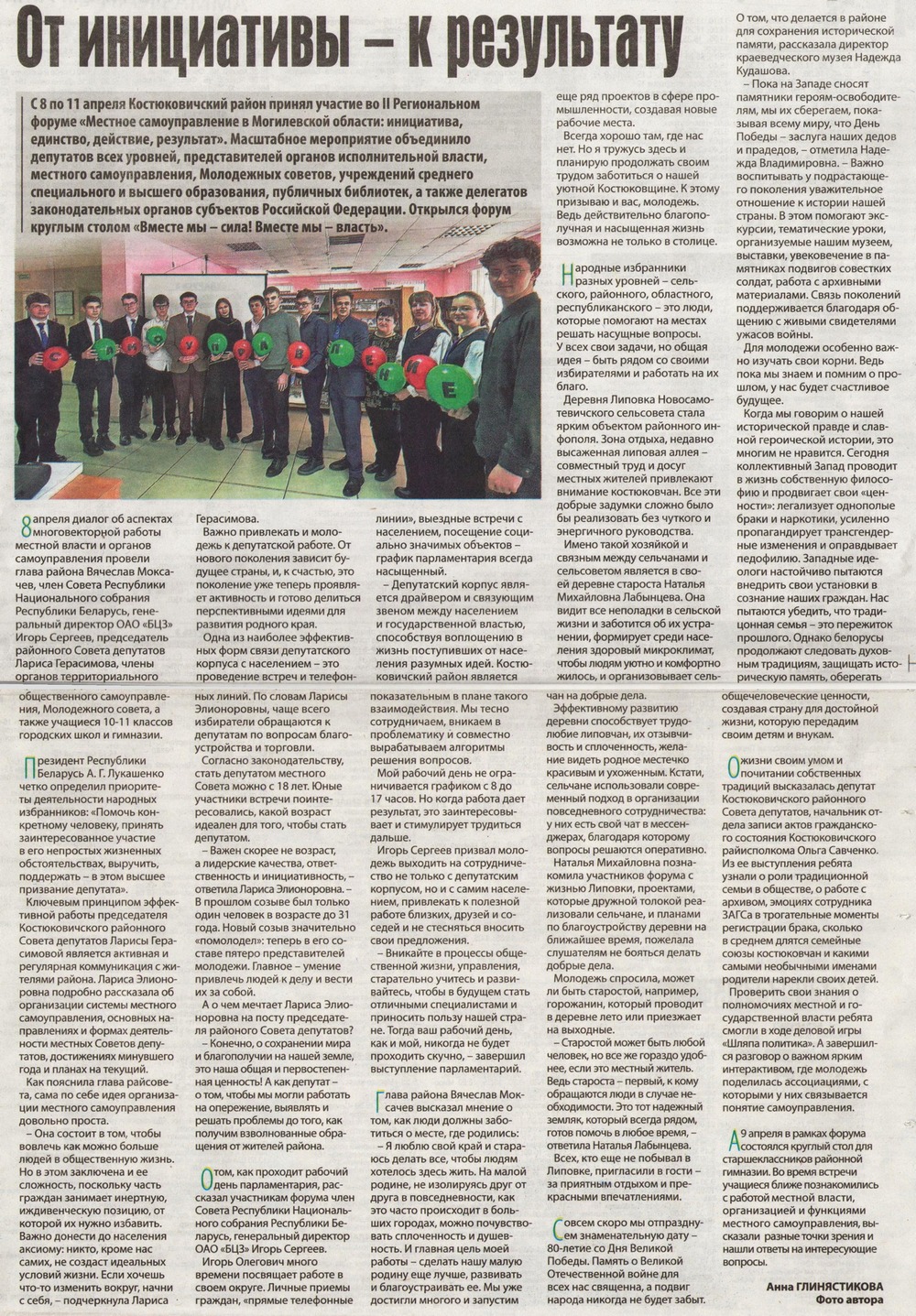 24. Глинястикова, А. От инициативы — к результату / Анна Глинястикова ; фото автора // Голас Касцюкоўшчыны. — 2025. — 12 красавіка. — С. 7 : фото.