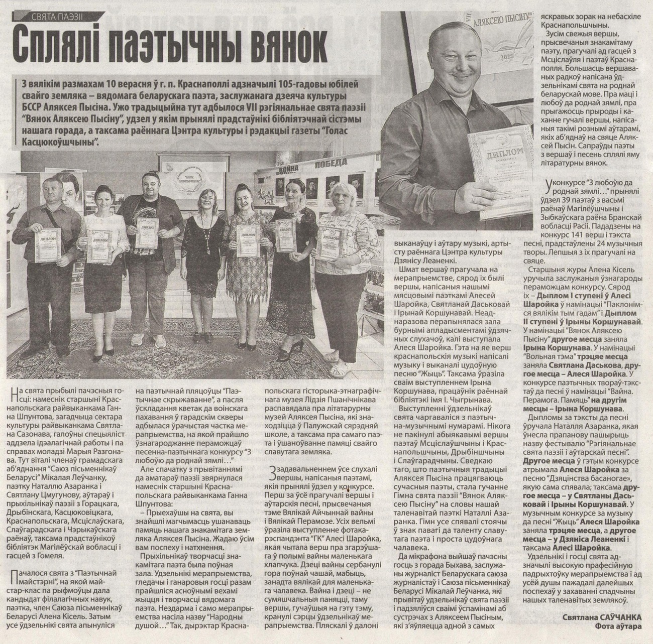 8. Саўчанка, С. Сплялі паэтычны вянок / Святлана Саўчанка ; фота аўтара // Голас Касцюкоўшчыны. — 2025. — 13 верасня. — С. 4 : фота.